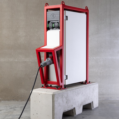 De Mobile is een mobiele laadunit die eenvoudig aan te sluiten is aan een energiebron en die geschikt is voor toepassing op tijdelijke